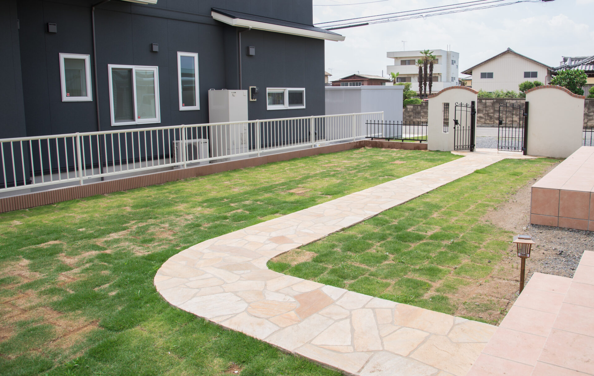 住宅の完成と同時に、建物の雰囲気に調和した統一感のある外構を設計・施工いたします。家全体の印象を引き立てるデザインで、暮らしの快適さと美しさを両立させます。